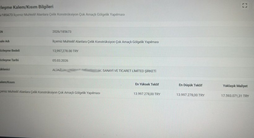 liralık çelik konstrüksiyon gölgelik işi… Üstelik bu ihalede dikkat çeken bir